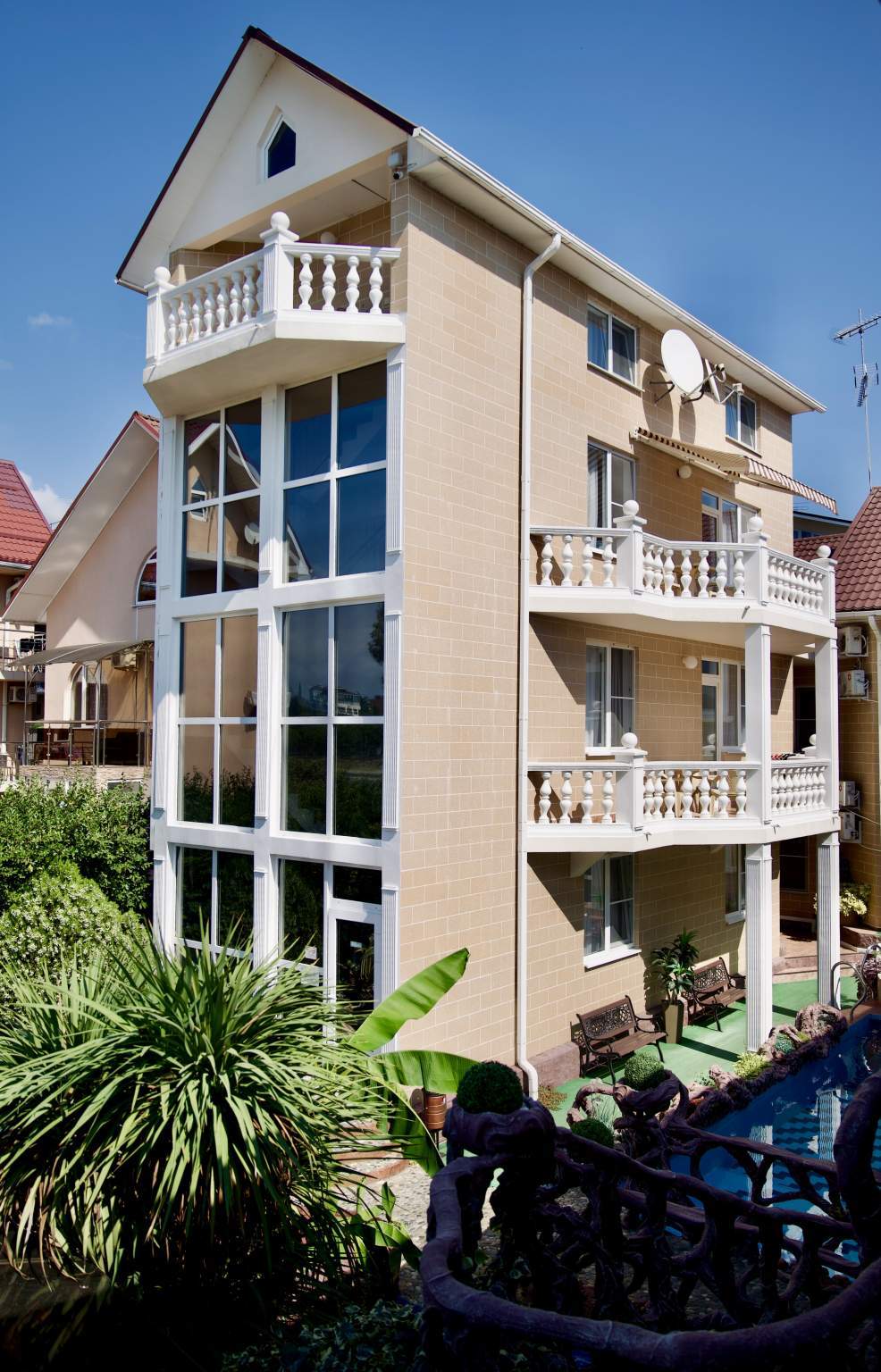 Удобное расположение обеспечивает быстрый доступ к центру Адлера, курортам Красной Поляны, аэропорту (15 минут) и железнодорожному вокзалу (12 минут).