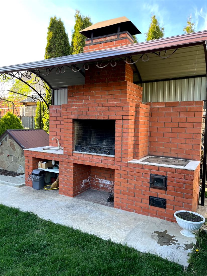 Имеется отдельно стоящее здание с гаражом, баней, хоз блоком, навес из винограда для автомобиля. Артезианская скважина, газ. Цокольный этаж, можно оборудовать под спортивный зал. Есть зимний сад на 2 м этаже, камин. Фруктовые деревья, орех, кизил, смородина, малина, виноград. В саду большой мангал с печью. Участок имеет ландшафтное озеленение. Дом из полнотелого гипсоблока, обложен кирпичом. Летом прохладно, зимой тепло. Имеет выход на 2 улицы. 4 спальни, холл с камином, гостиная, кухня, санузел, зимний сад. Пол - натуральный паркет, двери- бук. Состояние дома хорошее, заходи и живи.