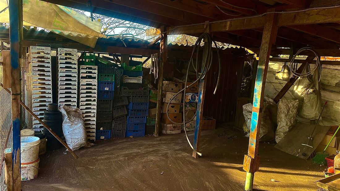 — Две теплицы: одна на ленточном фундаменте, вторая — каркасная, общей площадью 2 сотки, для круглогодичного выращивания овощей и зелени.